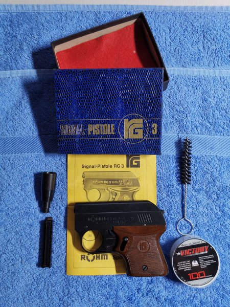 Es handelt sich um eine gebrauchte Röhm RG3 Kaliber 6mm Flobert in einem sehr guten Erhaltungszustand mit der PTB 33, noch Original Röhm Qualität Made in W.-Germany. Es ist alles vorhanden (Rotes Tuch, Abschussbecher, Anleitung, Magazin, Bürste) sowie eine Dose mit 100 Schuss Flobert Platzpatronen!