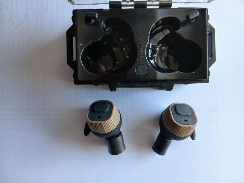 Verkaufe gebrauchte elektr. Ohrstöpsel für Schießstand, Jagt. Aktive Geräuschunterdrückung, werden in der Box über USB (Ladekabel dabei) geladen, Box wieder Aufladbar,