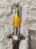 RAD Offiziers Dolch, mit Hersteller, Zustand siehe Bilder, Da Privatverkauf ohne Rückgabe, jeder entscheidet selber ob er einen Euro ausgibt oder 2000€, mit Abgabe eines Gebotes ist der Käufer damit einverstanden, die Scheide ist magnetisch, aber vermutlich aus den 60/70iger Jahren, habe einen solchen auf Hændlerseiten mit einer Identischen Scheide für 2700€ gesehen, die wissen auch keine Schrauben oben an der Klingenführung in der Scheide auf, das Blech ist auf Spannung eingesetzt