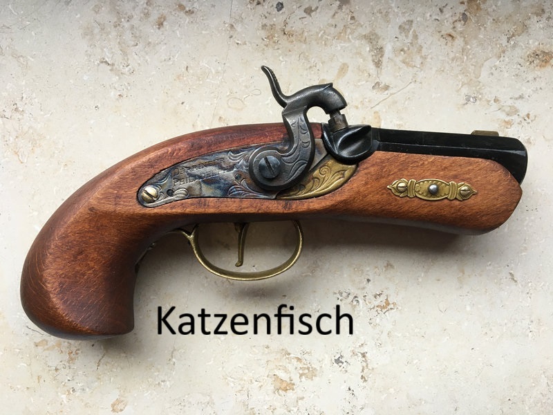 ACHTUNG WICHTIG: Solange noch kein Gebot vorliegt bzw. über Sofortkauf abgeschlossen wurde, behalte ich mir vor, die Auktion vorzeitig zu beenden. Ich bitte um Verständnis! KEIN VERKAUF AN BIETER MIT NULL BEWERTUNGEN!!!! und ich verkaufe auch nicht ins Ausland!!! Diese Gebote werden gestrichen! Allen anderen wünsche ich viel Glück! Wegen Sammlungsauflösung: Philadelphia Derringer Kaliber 45 mit tollem Ölschaft. Normalerweise haben die angebotenen Derringer von Dikar einen Lackschaft, was für mich überhaupt nicht schön ist und auch nicht dem historischen Original entspricht. Liegen dann auch wie Seife in der Hand. Der hernist richtig griffig. Alle Federn sind schön stramm und der Hahn rastet sauber in zwei Rastungen. Das Schloss ist buntgehärtet. Lauf innen natürlich spiegelblank und Piston tip top. Die Waffe ist ungeschossen. Hersteller ist Dikar in Spanien. Als Besonderhet hat er eine richtige Schloßgegenplatte aus Messing. Sehr aufwändig und schick und habe ich auch noch nie so gesehen.Wirklich also eine besondere Waffe. ---xxxxxxxxxxxxxxxxxxxxxxxxxx Privatverkauf unter Ausschluss jeglicher Gewährleistung. Rücknahme ausgeschlossen. Schauen Sie in meine Bewertungen, die sprechen für sich :o).... Porto ist ohne Inselzuschlag, der kommt dann ggf, noch dazu.------------------- Bitte beachten Sie auch meine andere Auktionen. ------------xxxx xxxxxxxxxxxxxxxxxxxxxxxxxxxxxxxxxxxxxxxx Bilder sind Teil der Beschreibung...........