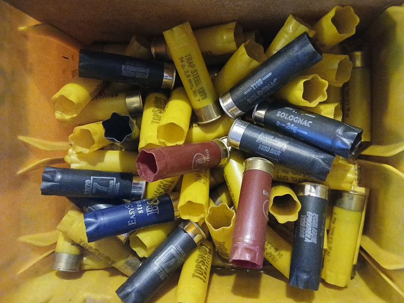 Biete 65 Stück "LEERE -ABGESCHOSSENE" Schrotpatronen Hülsen im Kaliber 12/70