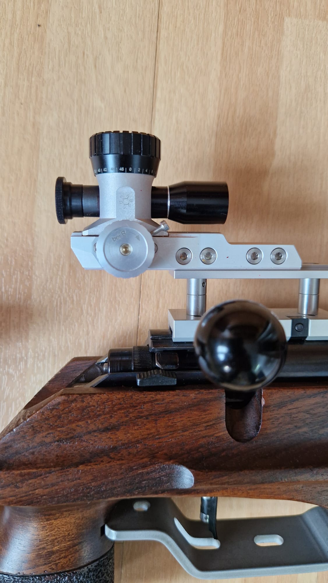 KK Diana 820 Standart mit Centra Spy BR 48 Klick ( UVP 719 Euro ) und verstellbares Ringkorn ( UVP 140 Euro )umstellbar von Querbalken auf Fadenkreuz, Block Club 106 Euro, Adlerauge 0,5, mit Gewehrkoffer. EWB