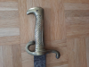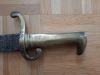 Original Faschinenmesser, vermutlich Infanterieregiment 85 (Holsteinisches). Abmessungen: 55x11x2,5 cm, Griff mit Parierstange 12,5 cm, Klinge 42,5 cm lang, 3,4 cm breit. Stempel „I.R.85“ und „I. 68“. Ohne Scheide. Zustand siehe Fotos. Messinggriff mit Narben und Dellen, Korrosion. Klinge stark vernarbt, korrodiert und geputzt.