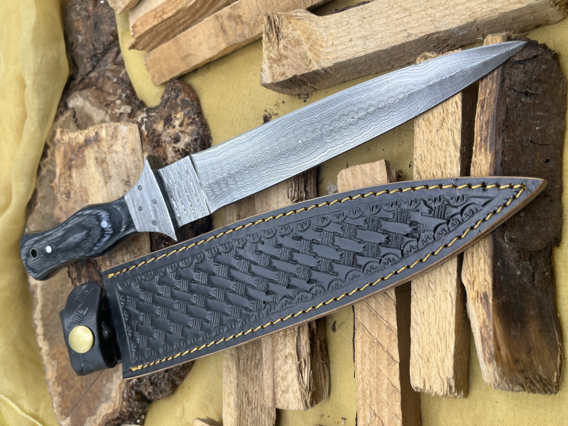 Klinge: 7.5" (ca. 19 cm), echter Damaststahl, Double Edge