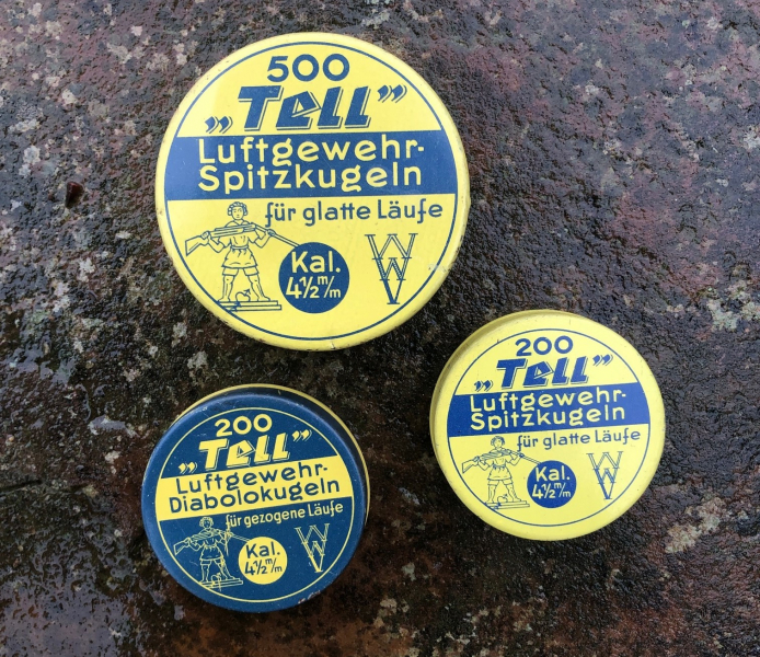 Drei Sehr schöne alte luftgewehr Dosen von Tell Spizikugeln und DiabolokugelnSiehe Bild Die dosen sind Leer Versand ins Ausland bitte nach Versandpreis Fragen