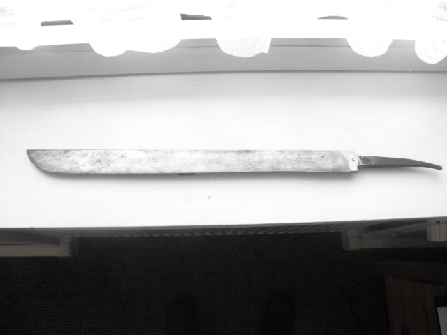 Mächtiges Teil. Länge ohne Griff 47,5 cm , Breite hinten 33 cm vorn 38 cm , 9 mm Dick.