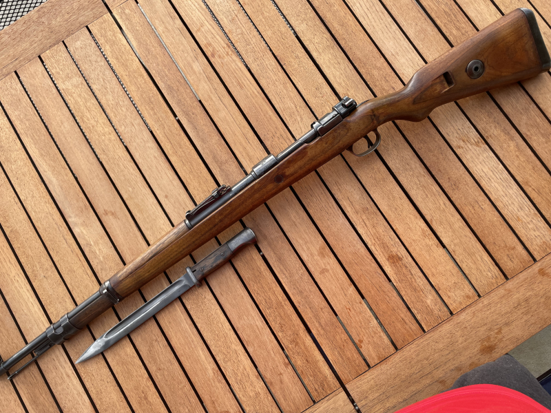 Mitgeliefert wird das nummerngleiche orginal Bajonett, ebenfalls WAA gestempelt, jedoch leider ohne Scheide.