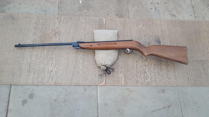 Milbro Luftgewehr in Cal 4,5mm ohne F, Baujahr 7. 62 . Das Luftgewehr schießt aber leider ist die Kimme defekt/ fehlt. Das Gewehr hat Gebrauchsspuren und ist Made in Britain.