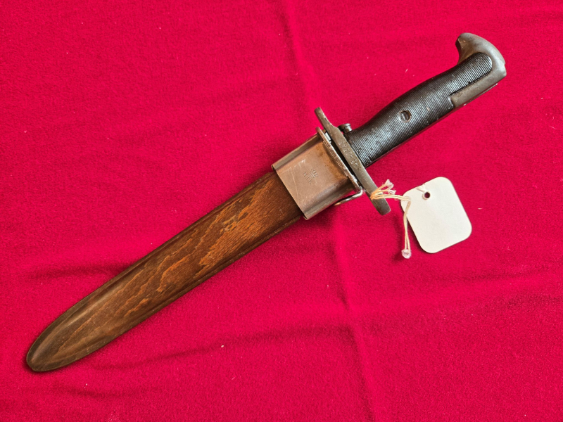 Verkaufe ein dänisches Bajonett m/1950 mit Kunststoffscheide (Holzoptik).
