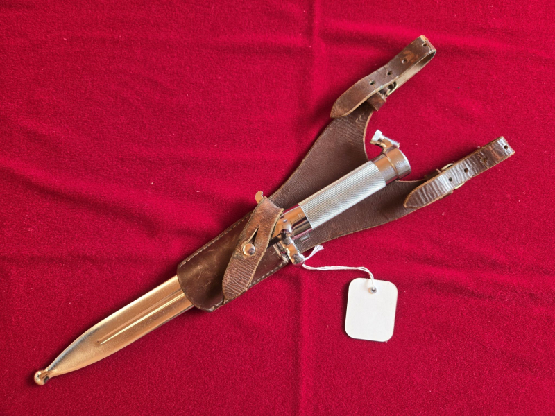 Verkaufe ein schwedisches Bajonett m/1896 vernickelt, mit Stahlscheide, Halteklammer und Offiziers-Koppelschuh/Tragevorrichtung.