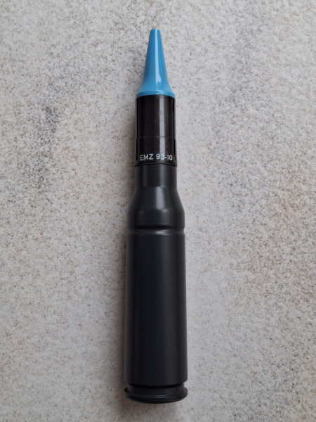 Sie bieten auf ein Patronen-Dummy im Kaliber 25 x 137 mm, der keinerlei Gefahrenstoffe enthält. Hersteller gemäß Bodenstempel ("EMZ"): Eurometaal Zaandam, Niederlande. Bei dem Geschoss könnte es sich um ein Üb-Geschoss handeln, darauf deutet zumindest die blaue Farbe der Geschossspitze hin. Wenngleich der Dummy keinerlei waffenrechtlichen Beschränkungen unterliegt, verkaufe ich diesen dennoch ausnahmslos nur an volljährige Personen, daher auch der Hinweis "Altersnachweis erforderlich", der bei ID-Mitgliedern entfällt. Munition dieses Kalibers wird z.B. in der M242 Bushmaster Maschinenkanone verwendet. Der Dummy besteht aus einer abgeschossen Hülse (ohne Zündhütchen) sowie einem Geschoss, welches nur lose auf die Hülse aufgesetzt ist, d.h. das Geschoss ist nicht fest mit der Hülse verbunden. Das Geschoss ist im unteren Teil aus Metall gefertigt, der Rest besteht aus Kunststoff (schwarzer und blauer Teil). Eine kleines Papp-Röhrchen zur Aufbewahrung des Geschosses gehört ebenfalls zum Lieferumfang. Das Bild zeigt den Artikel, auf den Sie bieten. Versicherter Versand mit Sendungs-ID. Kein internationaler Versand, d.h. Versand nur innerhalb Deutschlands ! Da es sich um einen Privatverkauf handelt, der keinen gewerblichen Hintergrund hat, ist jede Garantie oder Gewährleistung ausdrücklich ausgeschlossen; ebenso ist eine Rücknahme der Ware nicht möglich oder mit anderen Worten: DER VERKAUF ERFOLGT UNTER DEM AUSSCHLUSS JEGLICHER SACHMÄNGELHAFTUNG. Mit der Abgabe eines Gebotes akzeptieren Sie diese Bedingungen; bitte bieten Sie also nicht, wenn Sie mit den vorgenannten Bedingungen nicht einverstanden sind. MyGun ist Bestandteil dieser Auktion. ebenfalls zum Lieferumfang.