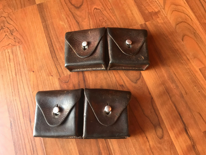 Hier gibt es zwei gebrauchte Patronentaschen, dem alter entsprechender Zustand, von 1945 und 1949 der schweizer Armee zu ersteigern.