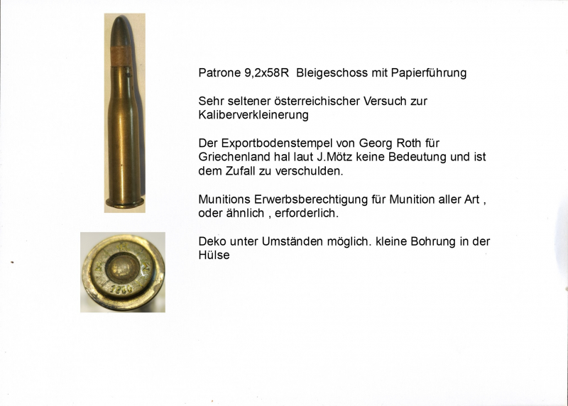 Aus Nachlass abzugeben. Patrone 9,2x58R Versuch, Kaliberverkleinerung... Privater Verkauf kein Umtausch oder Zurücknahme. Keine Garantie oder Gewährleistung. Versicherter Versand. EWB erforderlich !!! Beschreibung siehe Bild,,,,No Paypal