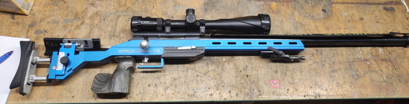 Keppeler Repetierbüchse im K09 Aluschaft blau Kal. .223 Rem. Lieferumfang ist neben dem Vortex 6-24x50 Zielfernrohr auch ein Magazin enthalten (nicht auf den Bildern zu sehen) die Aufnahme für ein Fortmeier Zweibein gehört ebenfalls dazu. Die Büchse ist mit einem Flimmerband ausgestattet, hat jedoch keine Mündungsbremse.