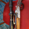 von Kahles Modell Helia CBX in 2-12×50 Abs.1 Leuchtpunkt montiert auf neuer Recknagel Schwenkmontage. Die Waffe hat auf der gesamten Basküle tiefgestochene Jagdgravuren. Die Lauflänge beträgt 60cm, der Schaftabstand beträgt 36cm und die Gesamtlänge 104cm. Der Drilling hat echte Seitenschlösser!