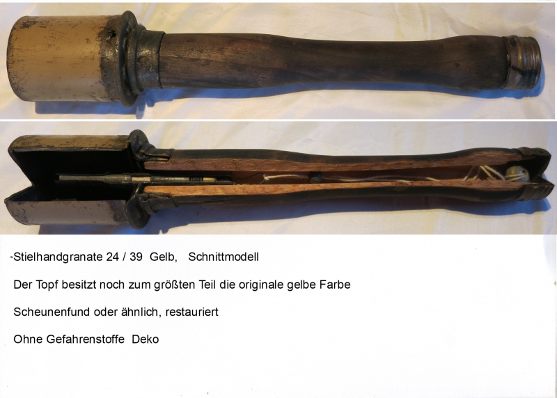 Aus Nachlass abzugeben. Stielhandgranate 24/39 Gelb,,, Schnittmodell,, Privater Verkauf kein Umtausch oder Zurücknahme. Keine Garantie oder Gewährleistung,, Versicherter Versand,,, Ohne Gefahrenstoffe Deko,,, Beschreibung siehe Bild,,,No Paypal