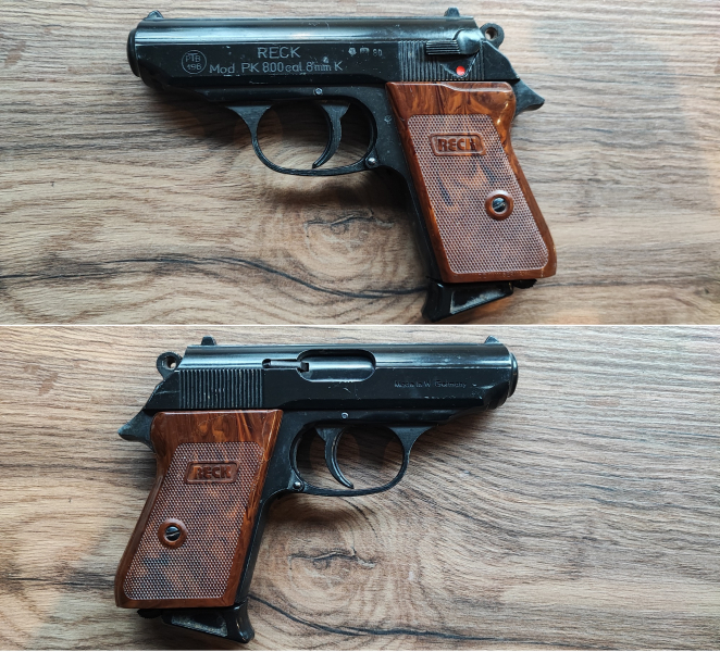 Die Pistole Hat gebrauchsspuren, ist aber funktionstüchtig, es ist die Version mit der Schraube im Patronenlager ;-)