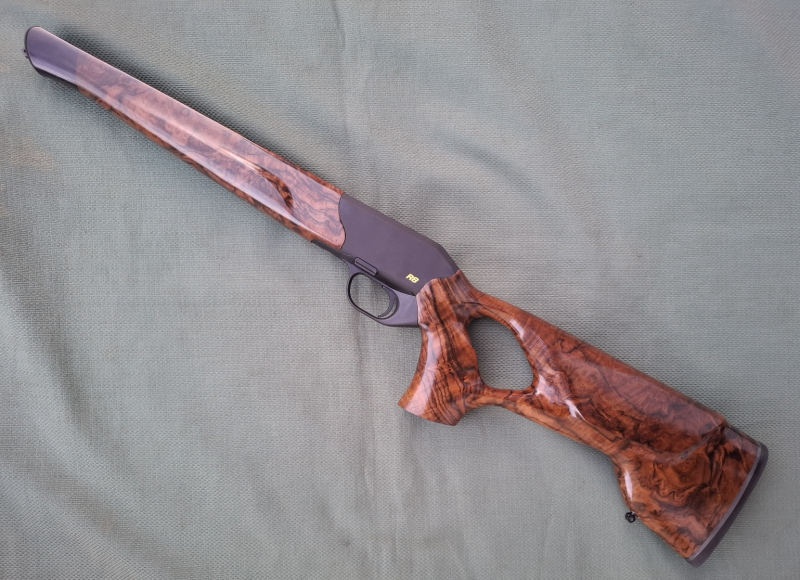 Blaser R8 Ultimate Komplettierung, Schaftholz in Klasse 11, Schaftlänge 370mm, Vorderschaft für normale Läufe, kann aber gegen Aufpreis aufgeweitet werden, Aufpreis für normale Fischhaut €140.--