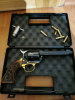 Ich musste einen Grat an einer der vergoldeten Schrauben entfernen, wodurch etwas von der Vergoldung abgetragen wurde. Ansonsten sieht der Revolver aus wie neu. Lieferumfang wie abgebildet. Anbei Kunststoffkoffer, und Reinigungsbürste.