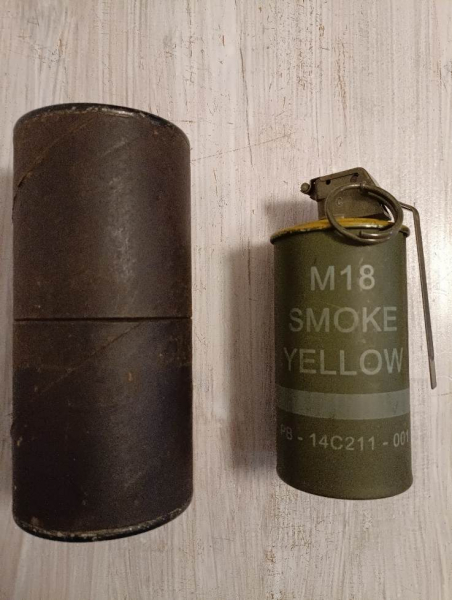 Originale US Rauchgranate M18 inklusive Container in einem guten Erhaltungszustand, mittlerweile recht selten zu bekommen.