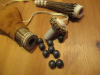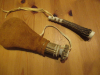 Kugelbeutel aus Leder, handgenäht, Tülle und Stopfen aus Hirschhorn gefertigt, Länge 20,5 cm, für Rundkugeln bis incl. cal.54, + superschönes olstyle Pulvermaß aus Hirschhorn, verschnitten, Länge 13 cm, ca. 50 grn. Replikat des 18. Jahrhunderts ECHTE HANDARBEIT !! DAS ULTIMATIVE WEIHNACHTSGESCHENK FÜR DEN REENACTOR !!!!