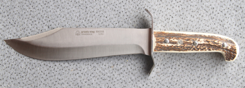 Aus der Auflösung meiner Sammlung angeboten wird das hier abgebildete Puma Jagdmesser 'grizzly stag 890008' samt Lederscheide. Es ist mit Griffschalen aus Hirschhorn versehen.