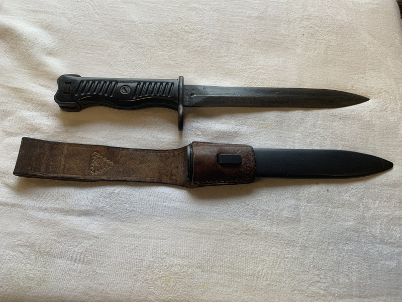 Bajonett Jugoslawien, Mod 1956 mit Koppelschuh. Das Bajonett, die Scheide und der Koppelschuh sind in einem sehr guten gebrauchten Zustand. Die Bajonett