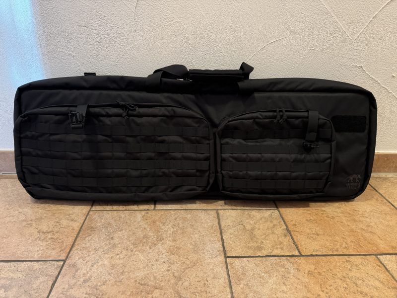 Hochwertiges, gepolstertes Futteral Tasmanian Tiger Modular Rifle Bag in Schwarz und Oliv für Langwaffen (AR15). Die durchdachte Waffentransporttasche ist aus robustem und stabilen Polyesterverbundsstoff Textreme 6.6 und für den harten Außeneinsatz entwickelt. Durch die PU-Beschichtung ist das Futteral wasserundurchlässig und sorgt dafür das Ihre Waffen trocken und sauber an Ihrem Bestimmungsort ankommen. Mit dicker Polsterung und diversen Fixiermöglichkeiten, um Schlag- und Stoßschäden an den Waffen zu vermeiden. Die aufgesetzten Fronttaschen bieten Platz für zusätzliche Ausrüstung und sind funktionell unterteilt. Das auf den Taschen angebrachte MOLLE-System schafft Raum für modulare Systeme und Anbauten. Zwei Tragegriffe und ein einstellbarer Rucksacktragegurt schaffen Comfort beim Transport der Langwaffen. Die Gewehrtasche ist mittels eines Vorhängeschlosses (nicht inklusive) abschließbar.
