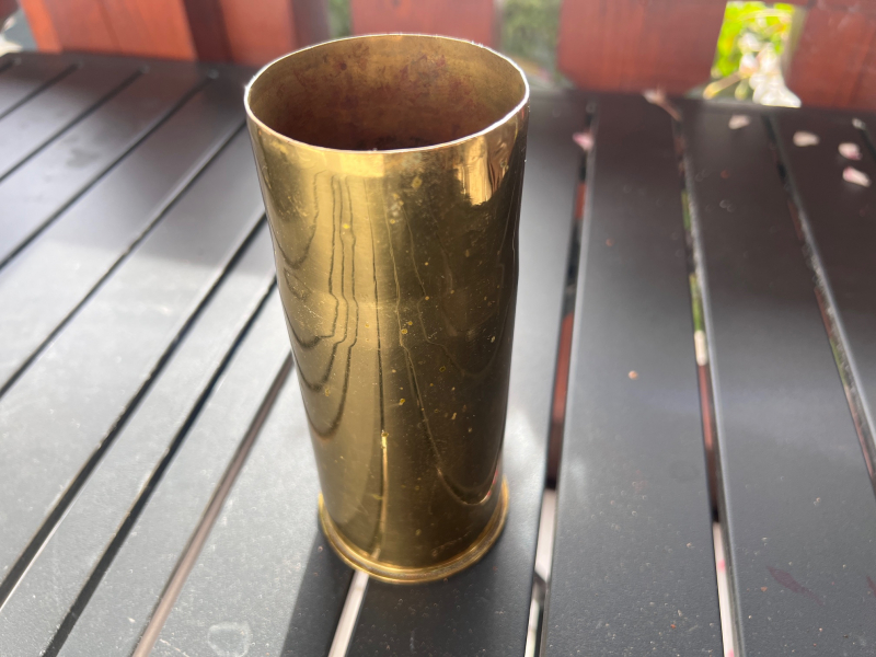 WK1,1912, 65x167R mm französische ARS 65 12L.1912.R Messing Granat Kartusche, für die Mle 1906 Gebirgskanone, Top Zustand.