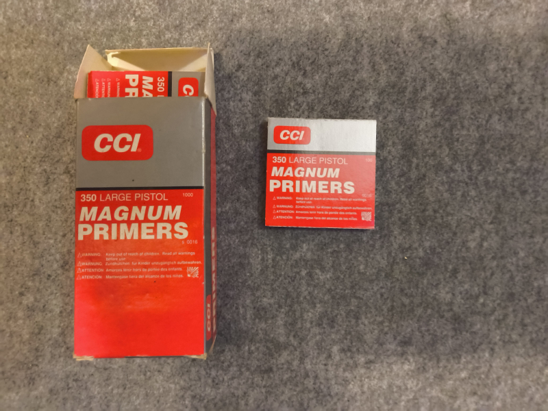 Hallo zusammen, verkaufe hier CCI 350 Large Pistol Magnum Primers. Trocken gelagert, Zustand siehe Bilder. Gemäß neuem EU-Recht erfolgt dieser Privatverkauf unter Ausschluss jeglicher Gewährleistung, Garantie, Umtausch und Rücknahme. Bilder sind Bestandteil der Beschreibung und damit der Auktion.