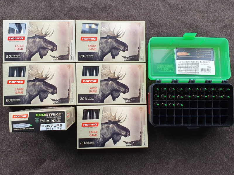 144 Schuss Norma EcoStrike 160 gr. - in 6 ungeöffneten Originalverpackungen und in der Munitionsbox, alles losgleich.