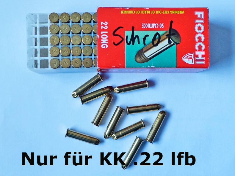 Biete hier eine Schachtel, 50 Stück .22 lfB KK Schrotpatronen FIOCCHI an. Die langen Metallhülsen passen nur in KK Langwaffen und Pistolen. Haben eine guten Streukreis und Wirkung, sind im Handel selten erhältlich. Versand versichert, auch Abholung nach Absprache möglich. Käufer trägt Versandspesen. Kein PayPal. Für den privat verkauften Artikel übernehme ich keine Gewährleistung im Sinne der neuen EU-Richtlinien. Mit Kauf der Ware erklären Sie sich ausdrücklich damit einverstanden, auf die Garantie oder Gewährleistung zu verzichten. Es besteht keinerlei Widerrufs- und Rückgaberecht (§312dAbs.4Nr.5BGB)