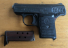 Lediglich die Brünierung zeigt altersbedingt an manchen Stellen leichte Abnutzungsspuren, für das hohe Alter ist die kleine Pistole aber noch wirklich gut erhalten.