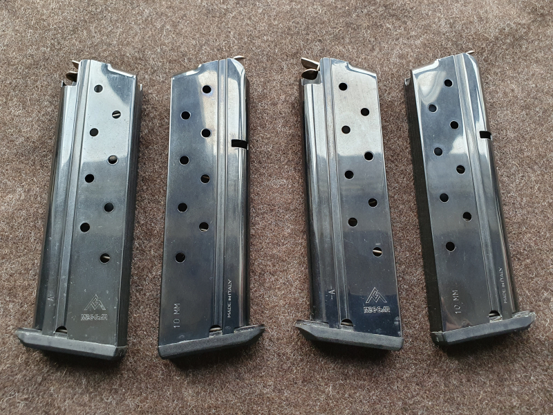 Zum Verkauf stehen 4 Magazine von Mec-Gar für die Colt Delta Elite und 8 Patronen Kaliber 10 mm Auto.