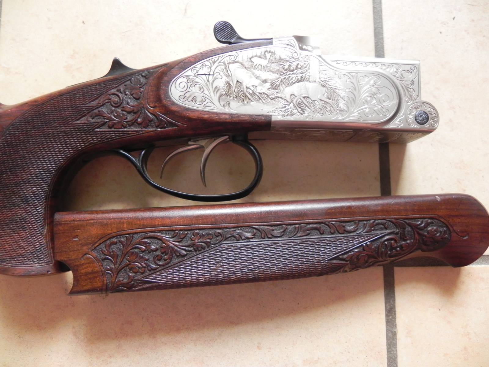 Zum Verkauf kommt eine Komplettierung für eine Krieghoff Ultra 20. Es handelt sich um den Hinterschaft mit System und dem passenden Vorderschaft für Läufe mit dem NICHT- thermostabilen Laufprofil. Der Vorderschaft ist für Bergstutzenläufe gedacht, kann aber vom Büchsenmacher einfach geweitet werden, so dass er auch für Laufbündel als Bockdoppelbüchse passt. Es handelt sich um ein Stahlsystem mit langen Seitenplatten und herrlichen Gravuren. Der Linksschaft weisst ebenso wunderschöne Verschneidungen auf und hat leichte Gebrauchsspuren vom jagdlichen Alltag.