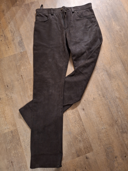 Sie bieten hier auf eine neue, ungetragene Büffellederhose des Herstellers Hubertus. Die Hose ist deswegen neu, da ich 2 Größen zum Probieren bestellt habe und natürlich vergessen habe, die eine zurückzuschicken. Kerniges, kräftiges Leder in sehr schönem Braun, 5-Pocket Jeansschnitt mit zusätzlicher Messertasche. Innen mit einem Stoff gefüttert, dass sie nicht an den Beinen klebt. Die Länge lässt sich durch Kürzen anpassen. Größe 32. Einfache Bundweite ca. 41/42cm, Innenbeinlänge ca. 83 cm. Ich bin mit meiner anderen mehr als zufrieden. Ideal auch als Weihnachtsgeschenk. Sehen Sie sich auch gerne meine anderen Auktionen mit weiteren, hochwertigen Zubehör- und Montageteilen an. Bei Fragen gerne melden und viel Spaß beim Bieten!