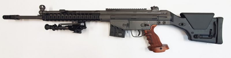 Selbstladebüchse SAR M41 DMR (DESIGNATED MARKSMAN RIFLE) im Kaliber 308win. ähnlich HK41/G3 Custom von der Firma Schwaben Arms GmbH Neckartal.95 in Rottweil, neu hergestellten M41 Gewehre MADE IN GERMANY.