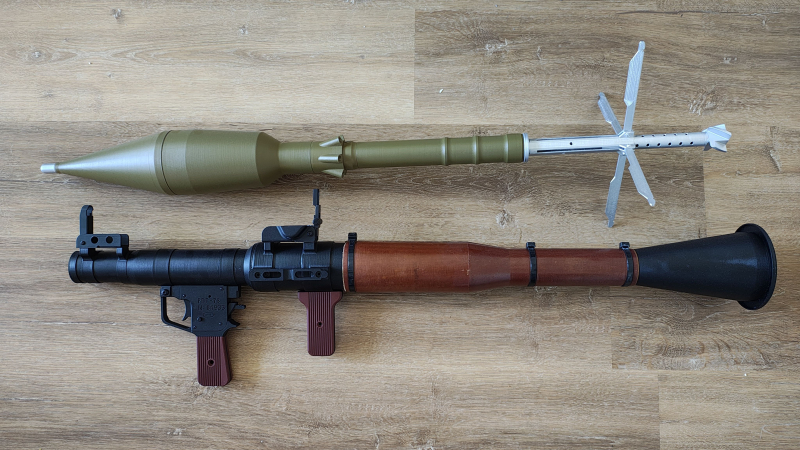 RPG 7 Dummy aus Kunststoff mit PG7V Rakete,Visierung ist klappbar,Raketenflügel lassen sich auf und zu klappen und kann in den RPG 7 eingesteckt werden,der Hitzeschutz ist original russisch aus Echtholz ansonsten ist alles aus Kunststoff und 1:1 Dummy Nachbildung.Unikat,nicht mehr zu bekommen.