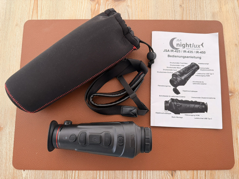 Ich biete ein gebrauchtes Nightlux JSA IR-425 Wärembildgerät mit Anleitung, Trageriemen und Neopren Tasche.