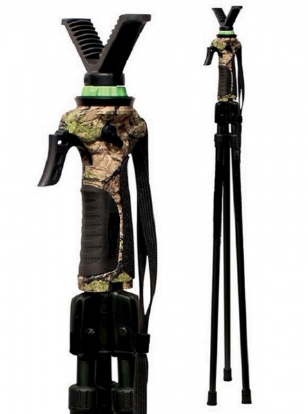 Anatomisch geformter Griff mit 360° drehbarer gummierter Gewehrauflage.