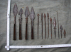 13 ältere afrikanische (zumeist unterschiedliche) Speerspitzen / Pfeilspitzen, unterschiedliche Längen, von 5,3 cm bis 23,5 cm. Genaue Herkunft: uns nicht bekannt, genaues Alter: uns nicht bekannt, Beschreibung/Zustand: gebrauchte Gegenstände mit altersbedingten Gebrauchsspuren, siehe Fotos.