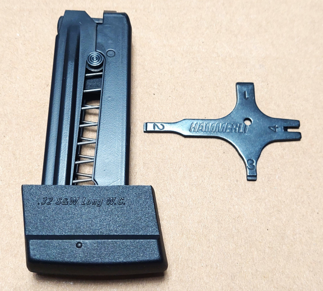 Aus Nachlass: Ein Magazin für eine Hämmerli Mod. 280 im Kaliber .32 S&W WC sowie ein Werkzeug zum verstellen der Visierung. Privatverkauf: Die Gesetzlich vorgeschriebene Garantie und Gewährleistung wird ausgeschlossen. KEIN Versand ins Ausland!!
