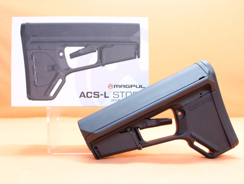Schluss mit wackeligen Schiebeschäften: Der MAGPUL ACS-L klemmt beim Feststellen auf der Buffertube und sitzt fast spielfrei, ausserdem bietet er durch seine Form eine hervorragende Wangenauflage.