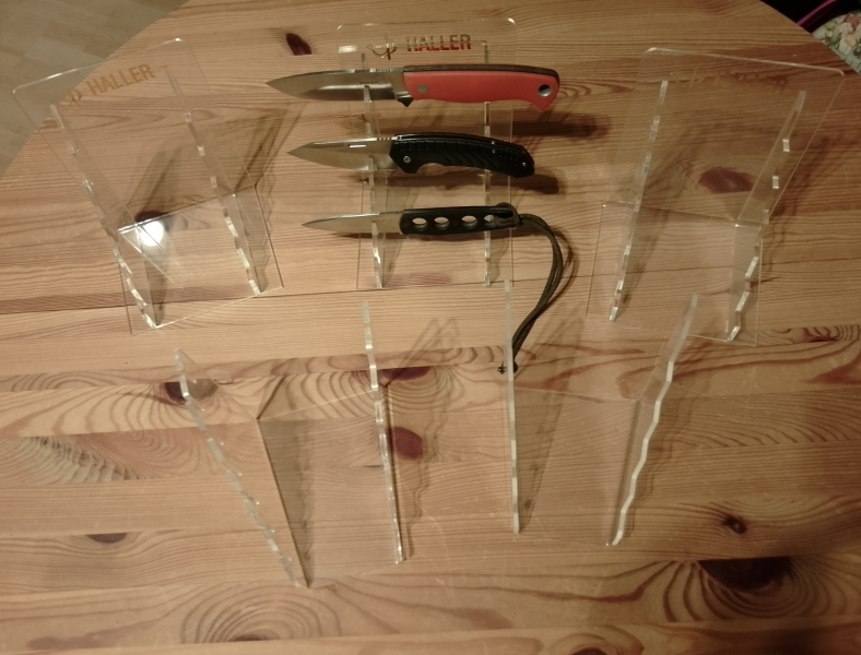 Biete hier 5 Acryldisplays für Messer an. Die Messer dienen zum Größenvergleich und gehören nicht zur Auktion.