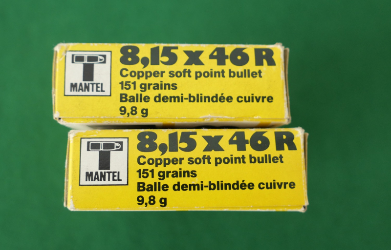 Verkauft werden ZWEI originale Packung mit 33 originalen RWS-Patronen im Kaliber 8,15x46R. In der einen Packung sind noch 7 leere Patronenhülsen. Die Geschosse dieser RWS-Patrone haben den Durchmesser Diameter .323. Ich selbst habe diese Patronen vor Kurzem hier bei EGUN erworben, kann diese Patronen leider nicht verwenden, denn der Lauf meiner Waffe verlangt den Geschoss-Diameter .318. Achtung: Der Versand in das EU-Ausland ist teurer. ACHTUNG: KEIN INTERNATIONALER VERSAND.