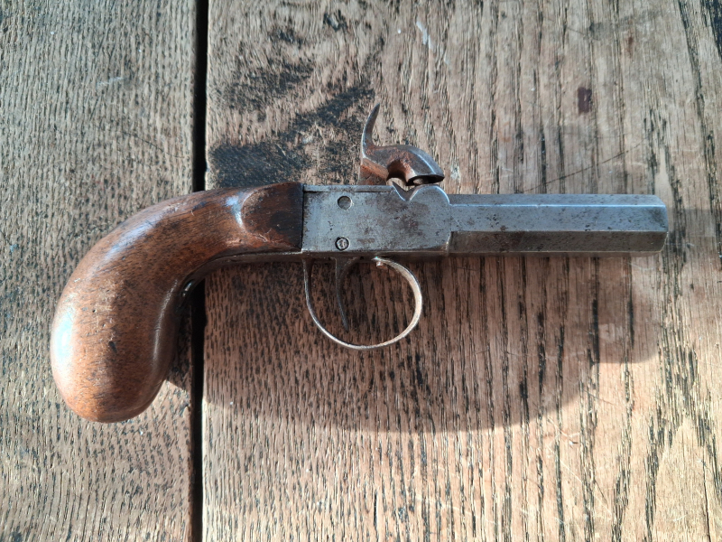 Taschenpistole, Kaliber 12,3 mm, keine Kennzeichnung, schussfähig.