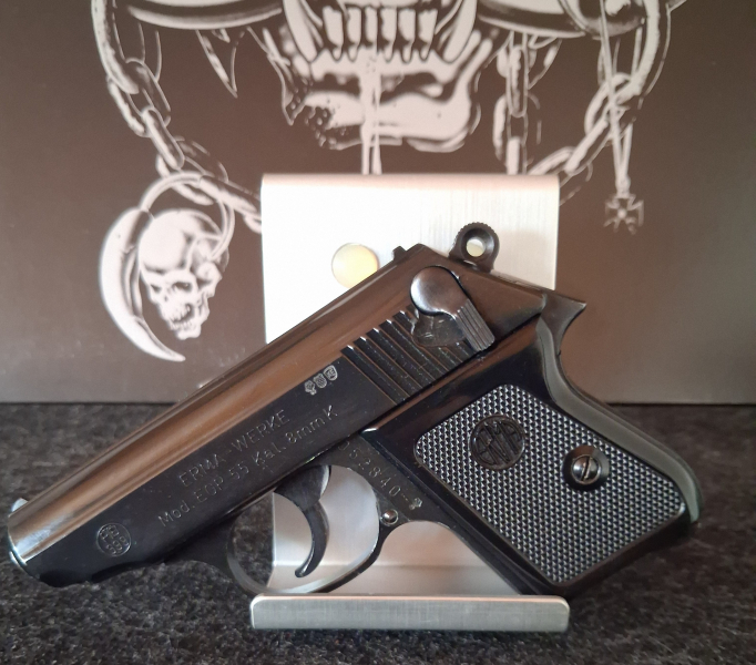 Selbstladepistole Erma EGP55 8mm, Sammlerzustand, Brünierung 100%, 8mm , Magazin, Becher, keine Anleitung, OVP, volle Funktion, lässt sich spannen und abschlagen