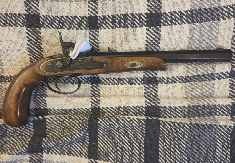 Biete euch hier eine Vorderlader Perkussionspistole von Ardesa (Spanien), in Kaliber 45 mit gezogenem Lauf an. Die Waffe wurde vom Vorgänger vielleicht zwei Mal auf dem Stand geschossen und von mir selbst nur einmal. Die Waffe ist so gut wie neu. Den Schaft hab ich einmal mit Schaftöl bearbeitet. Ich konnte keine Haarrisse im Schaft feststellen. Ob der Lauf keinen Flugrost hat kann ich nicht feststellen da mich meine Laufleuchte im Stich gelassen hat, im oberen Teil sieht es jedenfalls nicht nach Flugrost aus. Ich verkaufe die Waffe nur da ich auf Steinschloss umgestiegen bin. Aktuell kann ich euch sonst zur Waffe nichts weiter sagen. Wenn ihr noch Fragen habt oder ihr mehr Bilder wollt dann schreibt mich einfach an. Versendet wird in diesem Fall mit DHL.
