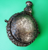 Hier ein alter , gebrauchter Behälter ein sogenannter Snuffbottle . Bernstein - Metall , Durchmesser 63mm. Rest siehe Bilder.