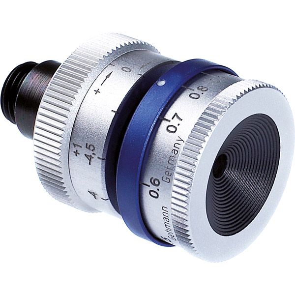 bei einer extrem kurzen Bauweise hat diese patentierte Iris-Diopterscheibe einen stufenlosen Verstellbereich von 0,5 - 3,0 mm